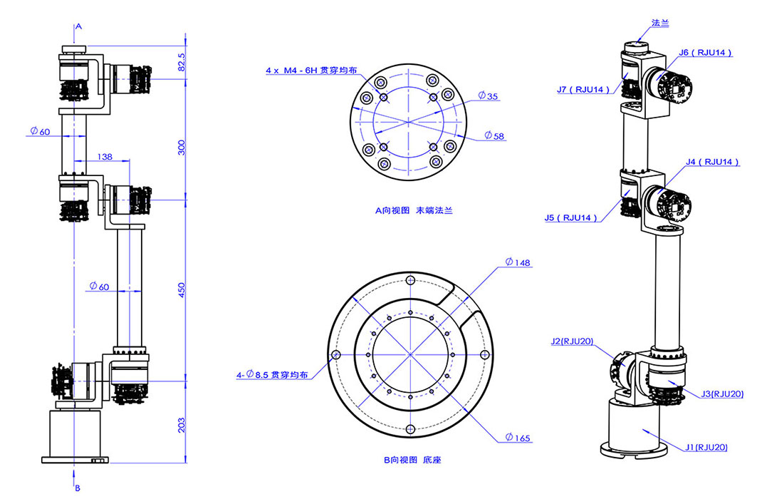 Simple co-robot is a new seven-axis co-robot developed and produced by Techrobots. It is assembled from a new RJU series joint modules without shell, which is mainly aimed at commercial and various life service applications.