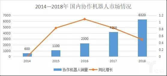 In 2018, the sales volume of cooperative robots in China increased by 49.9% over the same period of last year, and the market scale reached 930 million yuan, up 47.62% over the same period of last year. From 2014 to 2018, the annual composite growth rates of cooperative robots sales and market scale were 80.15% and 64.83%, respectively.