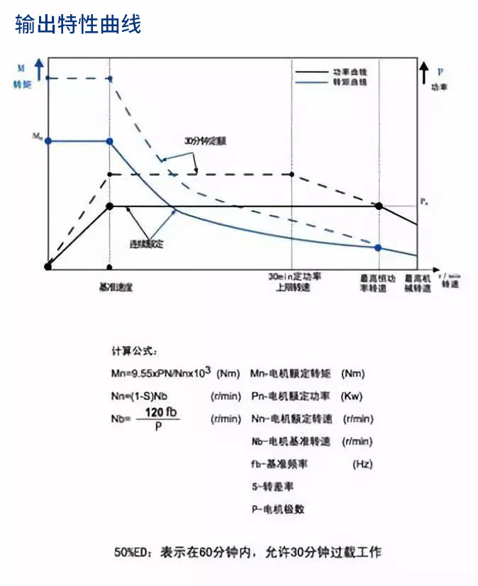 If you don't understand it, you can see the power and torque characteristic curve of the asynchronous motor below. (Note: Unlike DC motors, asynchronous motors may work beyond the transverse torque region.)